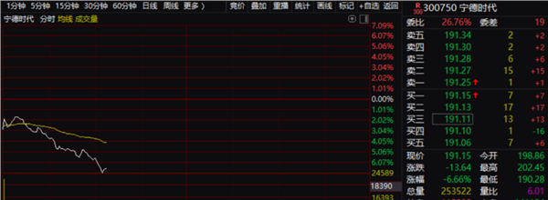 今天早盘,宁德时代股价突然大跌,并直接拉低创业板指数。该股一度杀跌超6%。