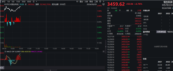 港股科技股表现强劲,恒生科技指数盘中一度大涨近3%