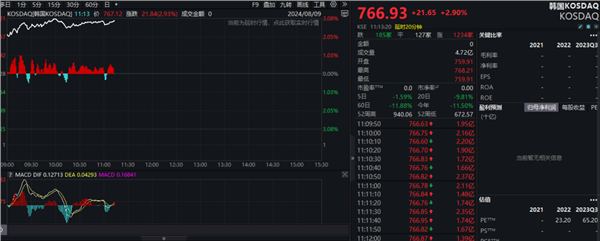 韩国股市方面,截至发稿,韩国综合指数盘中涨幅一度接近2%。科技属性较强的韩国KOSDAQ指数涨势更为明显,盘中涨幅超过3%。