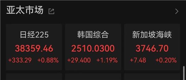 外围方面,日本、韩国重要股指大涨。