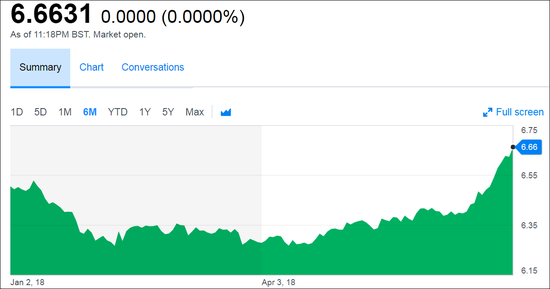 今年上半年人民币对美元汇率走势