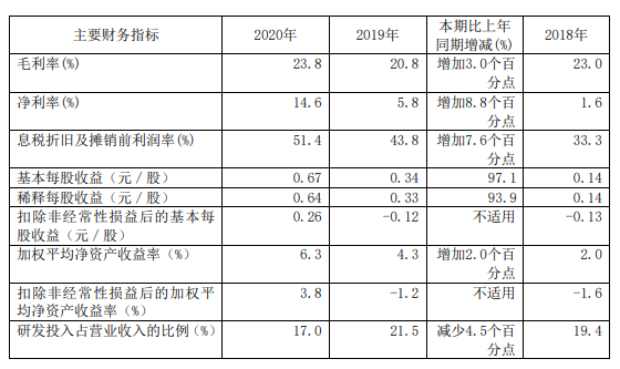 2020年,公司研发投入占营收比例为17%,同比减少4.5个百分点。
