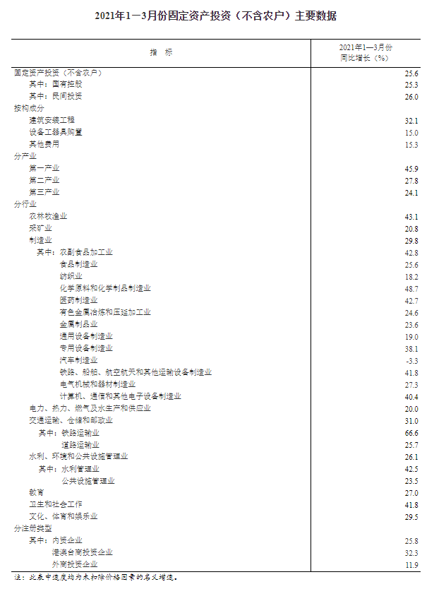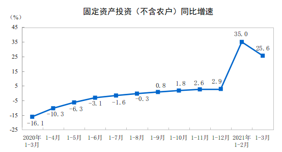 (原标题:继续高增长!中国1-3月城镇固定资产投资同比增长25.6%)